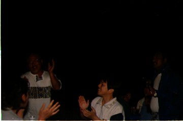 晩ご飯は港でバーベキュー民宿の晩ご飯は港でバーベキューでした。民宿の方が三線(沖縄の三味線)で 民謡を弾いてくれました。場が盛り上がってくるとみんなで三線に合わせて 琉球舞踊を踊りました。